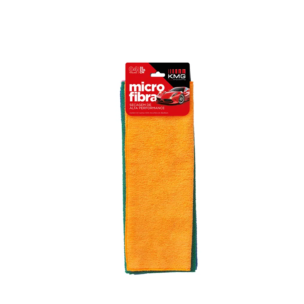 O Pano de Microfibra KMG com 4 unidades oferece toque macio e aveludado, alta absorção e secagem rápida. Versátil, durável, leve e compacto, é ideal para facilitar a limpeza e o cuidado diário em diversos ambientes.