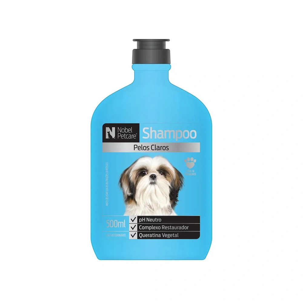 O Shampoo NOBEL PETCARE Pelos Claros 500ml foi desenvolvido especialmente para cães e gatos de pelagem branca ou clara, oferecendo uma limpeza suave e eficaz. Sua fórmula exclusiva com extratos naturais e queratina vegetal proporciona hidratação, brilho e maciez, sem agredir a pele ou os pelos dos animais. Além de higienizar, realça a beleza natural da pelagem clara, deixando-a mais vistosa e saudável.